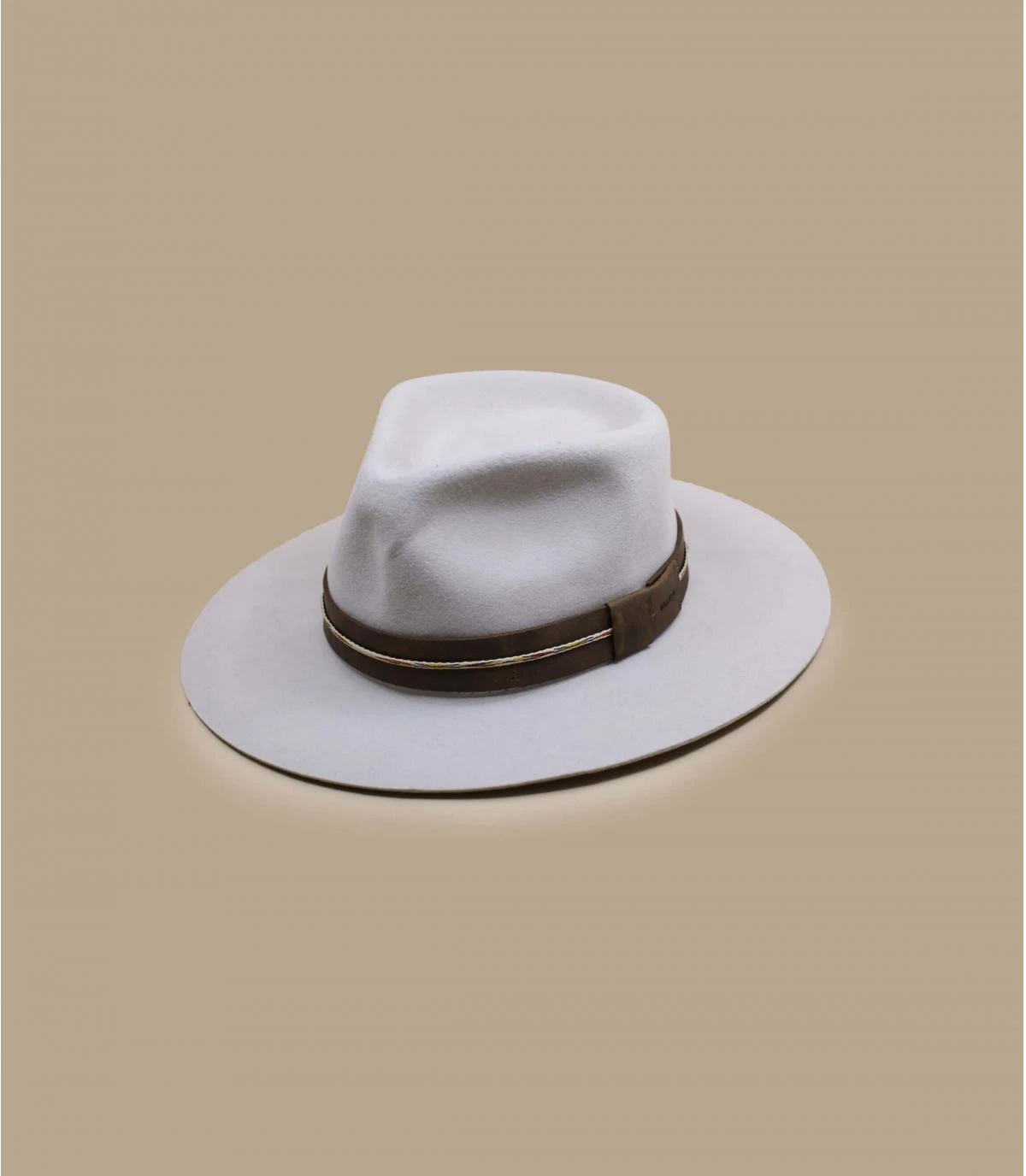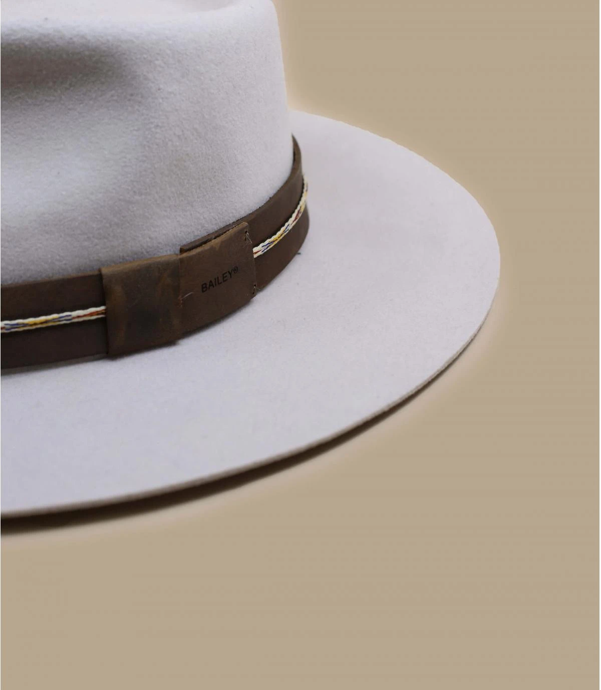 Parmi les finitions soignées dont bénéficie cet élégant chapeau de feutre beige que nous propose la marque spécialisée Bailey, on distingue une mise en forme Elite qui lui donne plus de rigidité, ainsi qu’une bande de cuir naturel sur l’extérieur et une bande de confort en chevreau à l’intérieur.