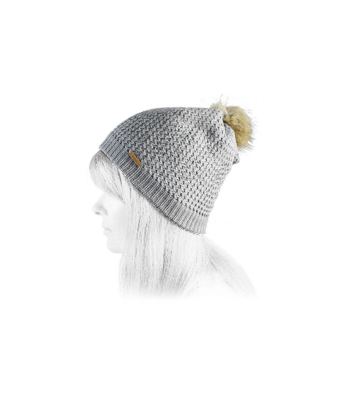 En gris chiné lumineux, ce ravissant bonnet vous donnera une allure très féminine, grâce à ses incrustations scintillantes. Bien chaud puisque sa matière très douce contient 50 % de laine, il est couronné d’un superbe pompon en fausse fourrure très légère.