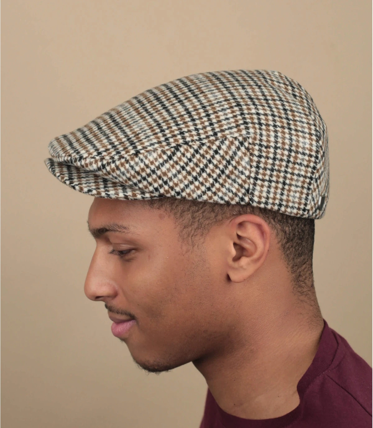 Le béret est rétro et élégant, il est reconnaissable à son sommet plat, et sa forme allongée comme une casquette. Le motif à carreaux de ce béret beige a un look très british, il est fait en polyester et en laine.