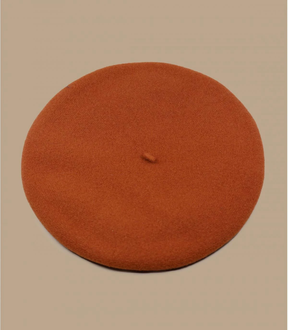 Idéal porté avec un manteau foncé, ce magnifique béret orange de la marque française Laulhère basée dans les Pyrénées est confectionné à la main à base de laine mérinos chaude, douce et imperméable. Il est doublé d’une étoffe satinée où est brodé un bel écusson.