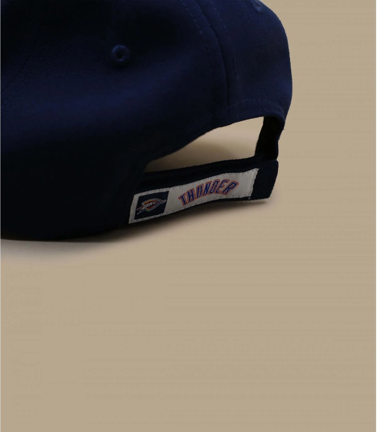 Casquette bleu marine à visière courbée, brodée en relief devant du logo de l’équipe de basketball des Thunder d’Oklahoma City. Ce modèle de la marque sportive américaine New Era est agrémenté sur le côté d’un petit logo assorti.
