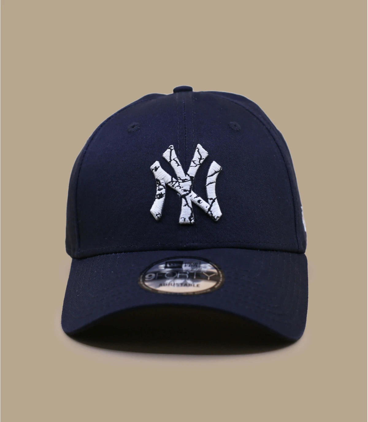 La casquette bleu marine à visière curve est un accessoire headwear essentiel. Elle est encore plus incontournable avec les initiales New York brodées en blanc, celles-ci sont décorées d’un motif marbre qui rajoute de l’effet.