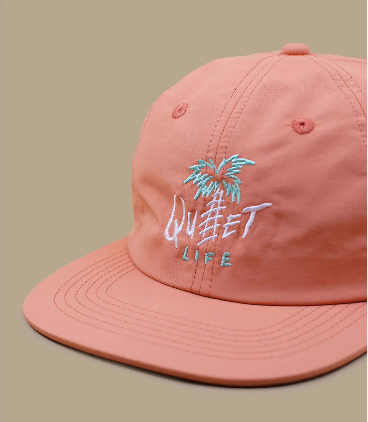 Ah la Californie et sa douceur de vivre, ses palmiers et ses plages de sable infinies ! Cette casquette de couleur corail vous y emmène avec sa broderie de palmier à l’avant. Sa visière plate vous donnera une allure décontractée.