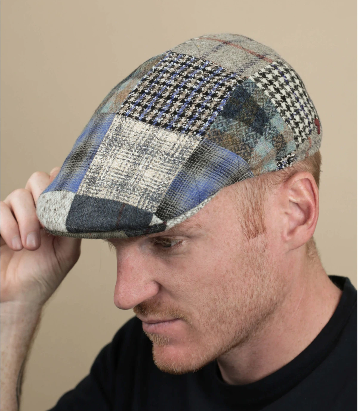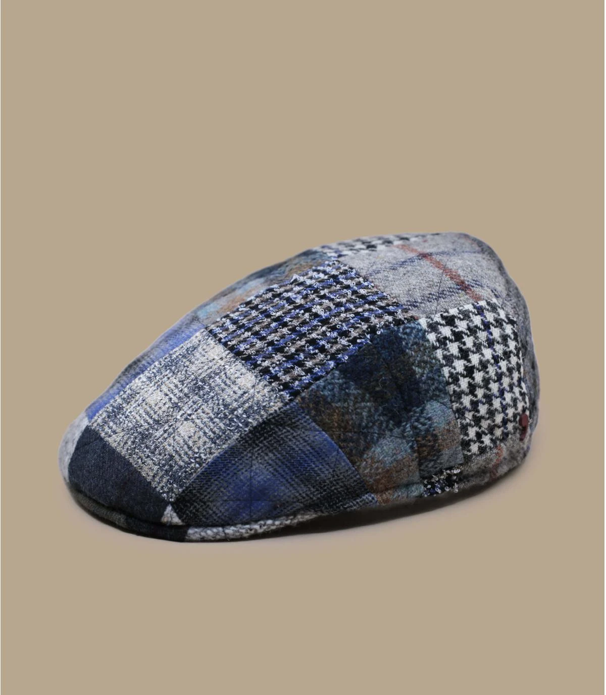 La casquette plate est un accessoire tendance à découvrir ou redécouvrir. Choisissez ce béret gris qui arbore un beau motif patchwork bleu, blanc et vert. Ce couvre-chef fabriqué en Italie vous donne un style élégant et original.