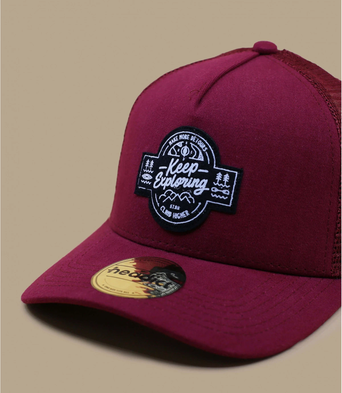 Cette belle casquette trucker bordeaux affiche un patch en feutrine imprimée qui plaira à tous ceux qui aiment parcourir les grands espaces : Keep exploring, continuez à explorer. À pied, en kayak, en van ou à vélo, tous les moyens sont bons pour se perdre dans la nature et découvrir sa beauté. Un modèle exclusif pour Headict.