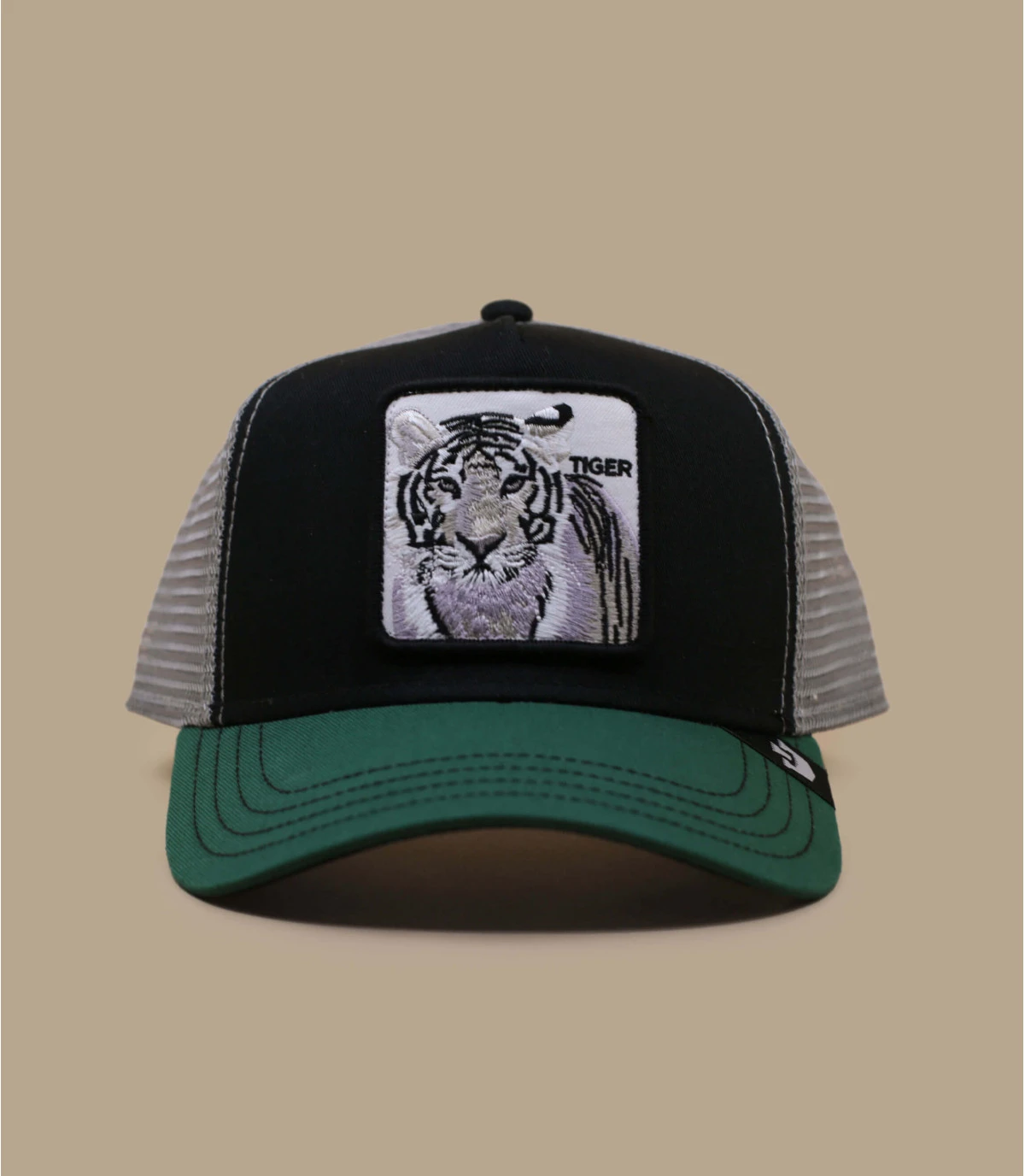 Le tigre rugissant qui décore cette magnifique casquette trucker de la marque américaine Goorin fera tourner les têtes sur votre passage. Dans une belle couleur grise, ce modèle frais sera facile à porter tout au long de l’été.